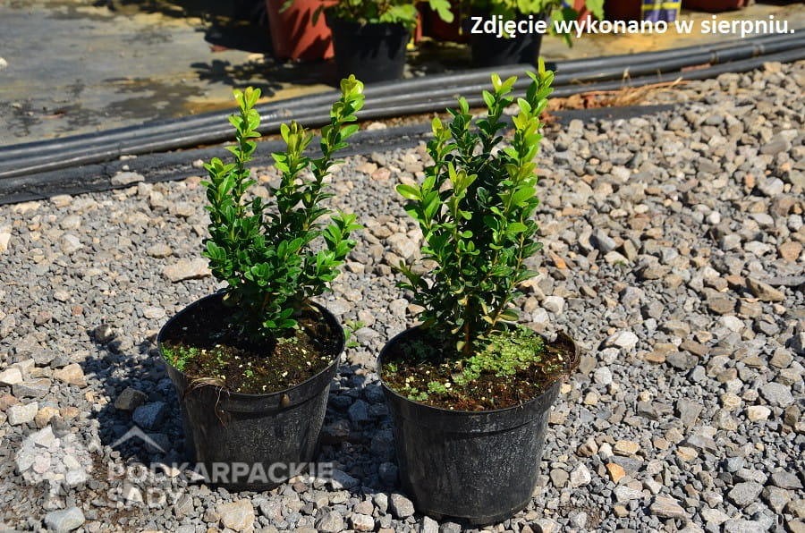 Bukszpan ‘Latifolia Maculata’ to rzadka i bardzo wartościowa odmiana bukszpanu, zdecydowanie warta większej popularyzacji. Jest to zimozielony krzew ozdobny o zwartym, gęstym i regularnym pokroju. Rośnie wolno, dzięki czemu przez długie lata zachowuje estetyczną formę i nie wymaga częstego formowania. Docelowo osiąga około 1,2 m wysokości, tworząc zaokrągloną, harmonijną sylwetkę, doskonałą do ogrodów formalnych i klasycznych.