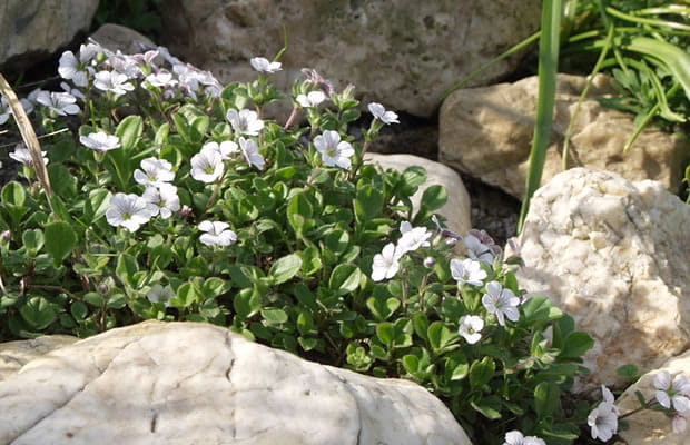 Gipsówka rogownicowata to niska, niezwykle dekoracyjna bylina skalna, tworząca zwarte, poduszkowate kobierce o wysokości zaledwie 5–10 cm. Roślina szybko się rozrasta, wypełniając przestrzeń i tworząc efektowne dywany, które wiosną zachwycają obfitym kwitnieniem. Dzięki niskiemu wzrostowi i zwartemu pokrojowi doskonale sprawdza się jako roślina okrywowa na małych powierzchniach.