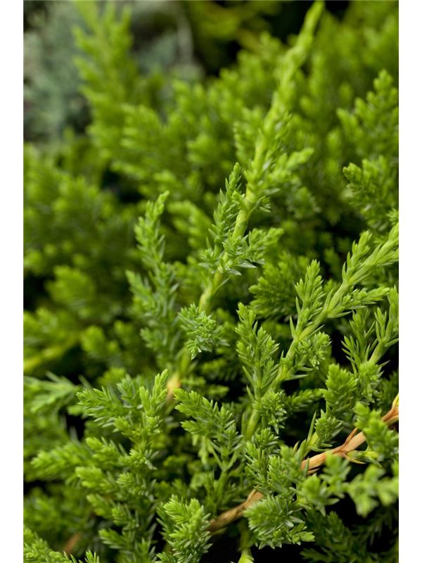 Jałowiec płożący ‘Prince of Wales’ (Juniperus horizontalis ‘Prince of Wales’) na pniu to wyjątkowa odmiana pochodząca z Kanady, ceniona za szybkie rozrastanie i dekoracyjny pokrój. W formie płożącej tworzy gęsty, jednolity „dywan”, który po 10 latach osiąga około 1 metra średnicy. W wersji szczepionej na pniu prezentuje się niezwykle efektownie dzięki gwiaździście rozchodzącym się, sztywnym pędom, przewieszającym się w dół wokół miejsca szczepienia. Igły są drobne, ostro zakończone, głęboko zielone, a zimą — szczególnie w pełnym słońcu — nabierają subtelnego, fioletowego odcienia, co daje wyjątkowy efekt na tle śniegu.