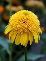 Jeżówka ‘Cara Mia Yellow’ to wyjątkowo dekoracyjna odmiana Echinacea, zachwycająca pełnymi, pomponowymi kwiatami w intensywnie żółtym kolorze. Jej soczyste barwy wprowadzają do ogrodu ciepło i energię, tworząc słoneczny akcent wybijający się na tle zieleni. Roślina zachowuje kompaktowy pokrój, osiąga ok. 50–60 cm wysokości i kwitnie bardzo obficie. Kwiaty mają gęstą strukturę i utrzymują się długo, czyniąc z tej odmiany prawdziwą ozdobę letnich rabat.