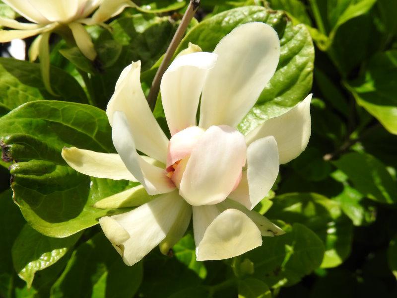 Największą ozdobą tej odmiany są jej niezwykle efektowne kwiaty. Są one duże, białe z żółtym środkiem, często z delikatnym różowym odcieniem na płatkach. Kwiaty mają miseczkowaty kształt i wydzielają intensywny, słodki zapach, opisywany jako połączenie aromatu truskawek i melona. Kwitnienie rozpoczyna się późną wiosną i trwa do lata, przyciągając liczne owady zapylające.