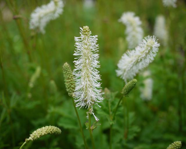 Kwitnienie krwiściągu Alba przypada na przełom lipca i sierpnia, kiedy w ogrodach zaczyna dominować letnia kolorystyka. Na szczytach cienkich pędów pojawiają się charakterystyczne, szczotkowate kwiatostany w czysto białym kolorze. Kwiaty są drobne, zebrane w wydłużone kłosy, które unoszą się ponad liśćmi, nadając roślinie niezwykle lekki i elegancki wygląd. Kwiatostany są miododajne i przyciągają owady zapylające, wspierając bioróżnorodność ogrodu.