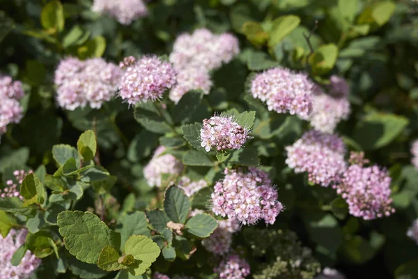 Kwitnienie przypada na okres letni. W tym czasie krzew pokrywa się licznymi, drobnymi kwiatami w różowych odcieniach.