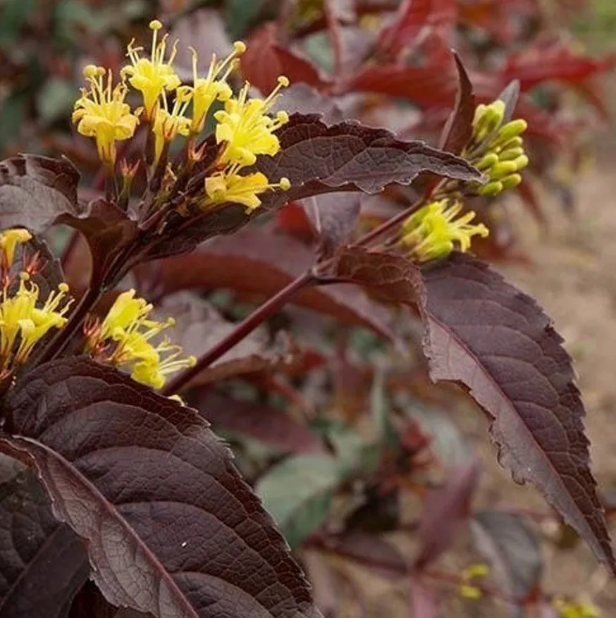 Zadrzewnia ‘Diva El Madrigal’ to niezwykle efektowny krzew ozdobny, który zachwyca egzotycznym wyglądem i intensywnym kwitnieniem. Jej największym atutem są smukłe, gęste kwiatostany w kolorze głębokiego fioletu, ozdobione kontrastującymi, pomarańczowymi pylnikami. Roślina tworzy luźny, naturalny pokrój i dorasta do około 2–3 metrów wysokości, dzięki czemu doskonale sprawdza się zarówno jako soliter, jak i element większych kompozycji ogrodowych.