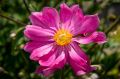 Kwitnienie rozpoczyna się w sierpniu i trwa nieprzerwanie aż do pierwszych jesiennych chłodów. Na szczytach wzniesionych, rozgałęzionych pędów pojawiają się półpełne kwiaty o średnicy około 6 cm. Delikatne, ciemnoróżowe płatki, lekko wywinięte na brzegach, otulają niewielki środek, ozdobiony wianuszkiem wyrazistych, pomarańczowo-żółtych pręcików. Obfite i długotrwałe kwitnienie czyni tę odmianę jedną z najcenniejszych jesiennych bylin.